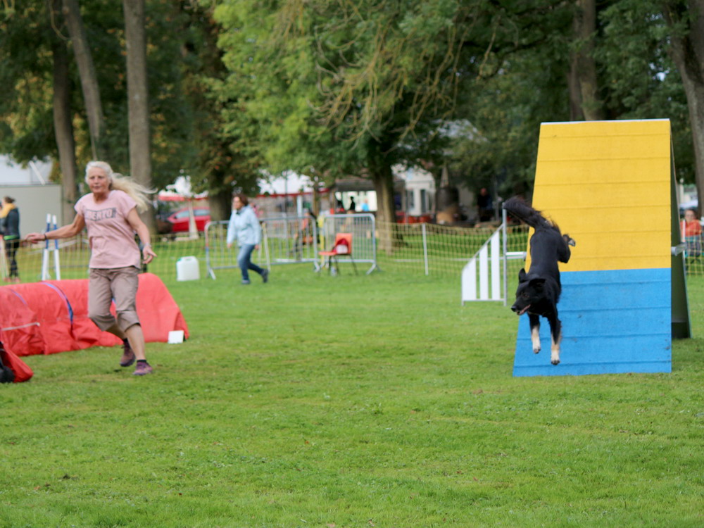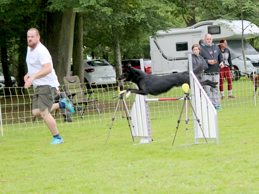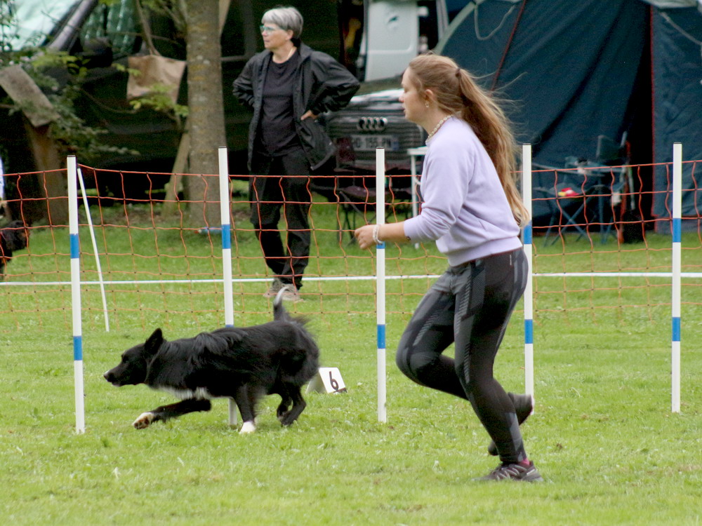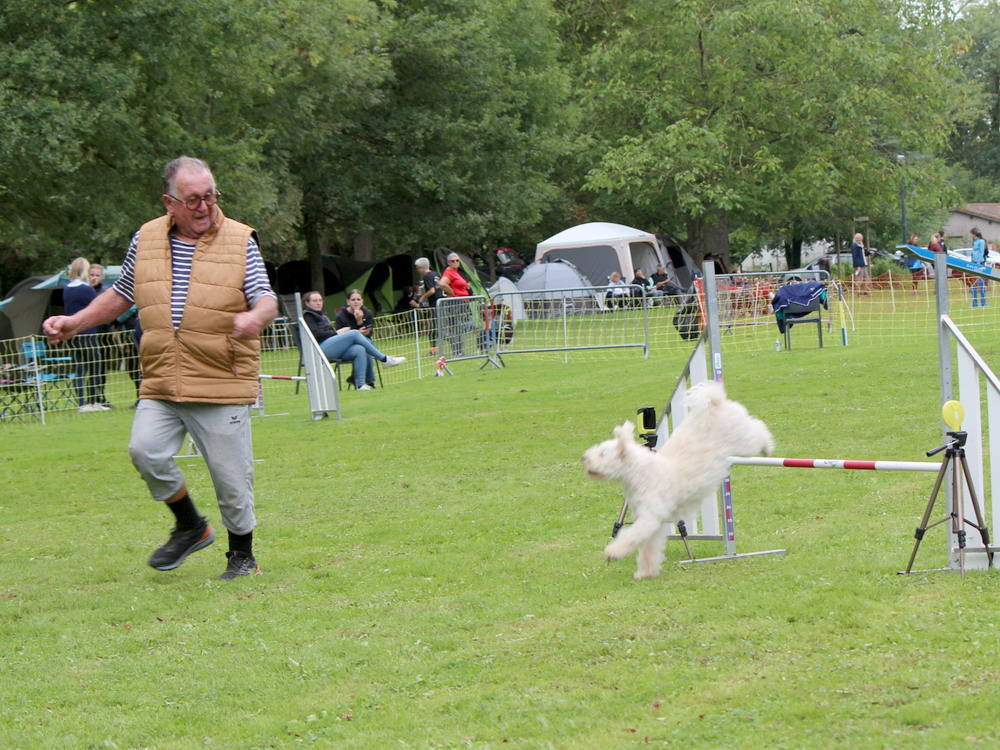 Pour permettre l'échauffement des chiens avant de concourir ... et des maîtres!, quelques obstacles d'agility ont été mis à disposition dans la prairie derrière les terrains du concours.