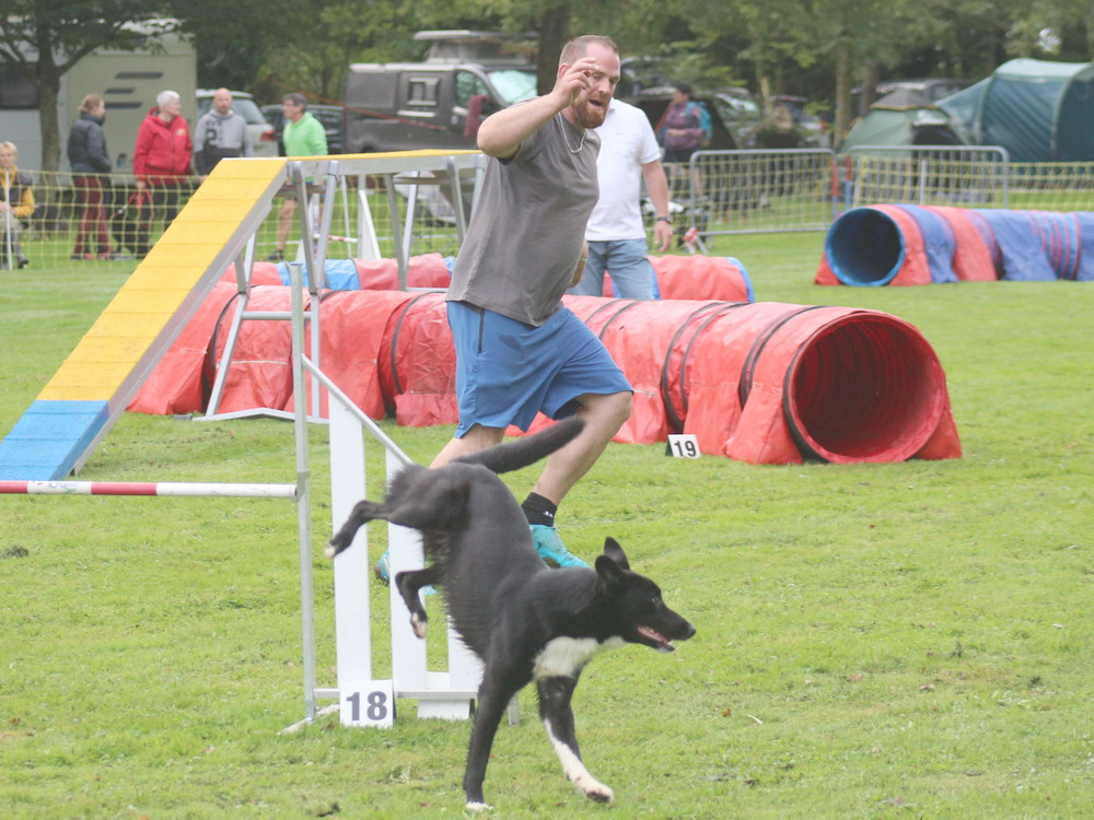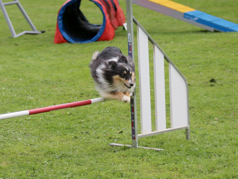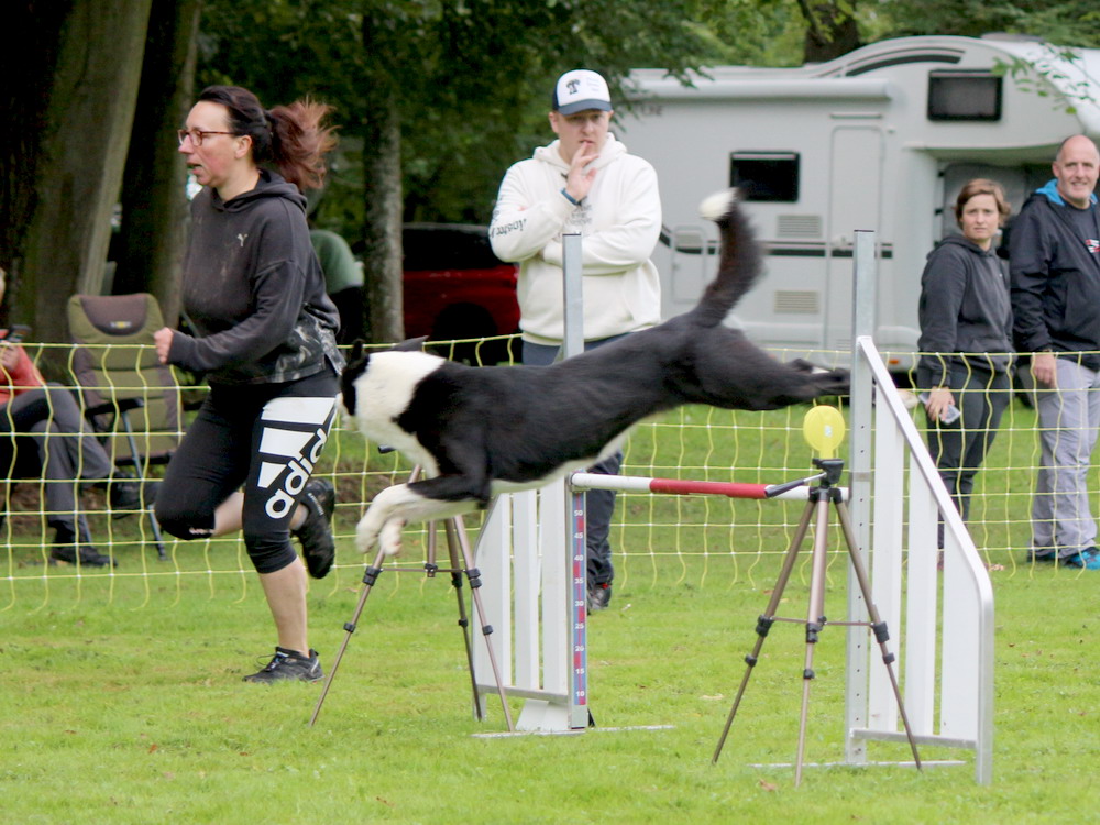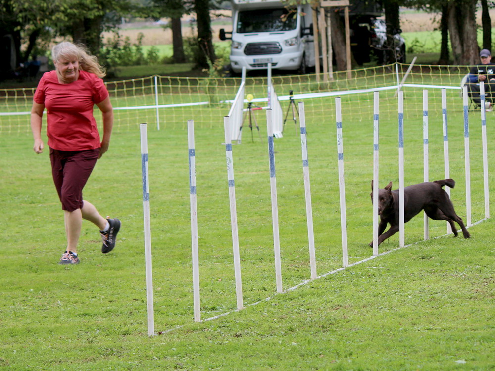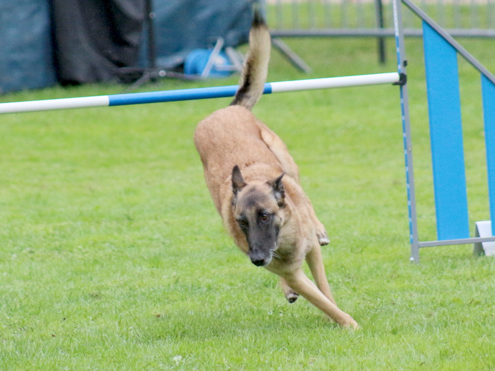 Pour permettre l'échauffement des chiens avant de concourir ... et des maîtres!, quelques obstacles d'agility ont été mis à disposition dans la prairie derrière les terrains du concours.