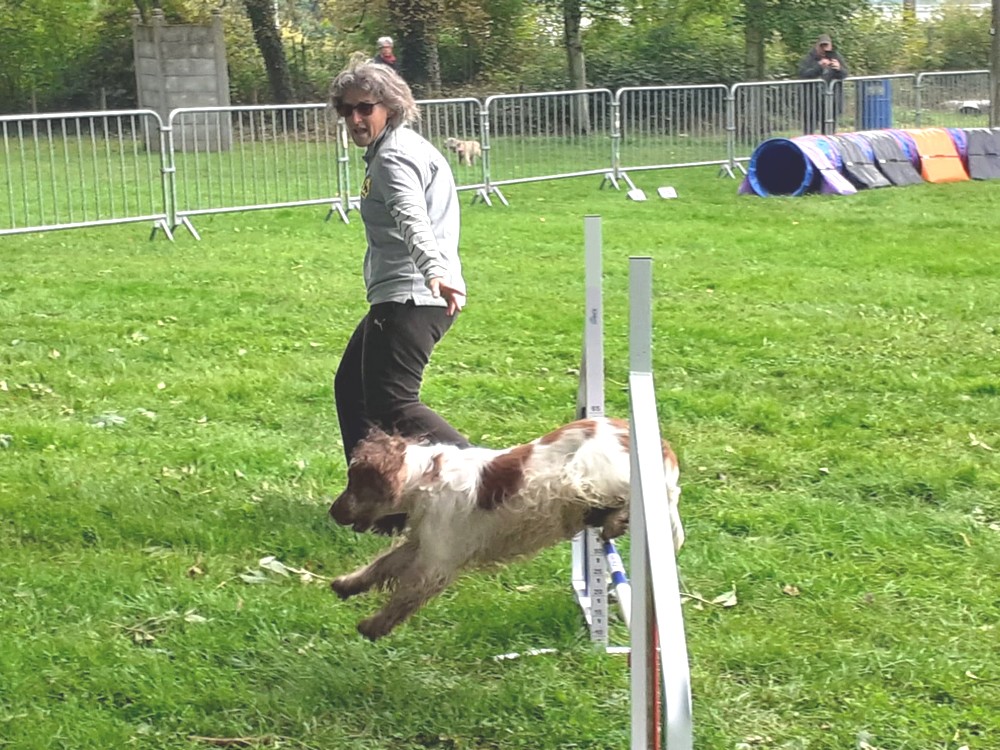 Olga, difficile de courir derrière son chien sur des parcours super longs, mais si elle a fait deux fautes de barre au jumping, c'est à 5,53m/s qu'elle a bouclé le parcours largement le meilleur temps toutes catégories confondues !