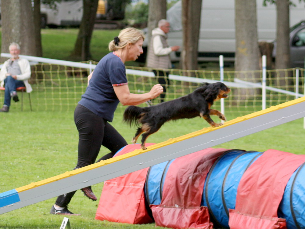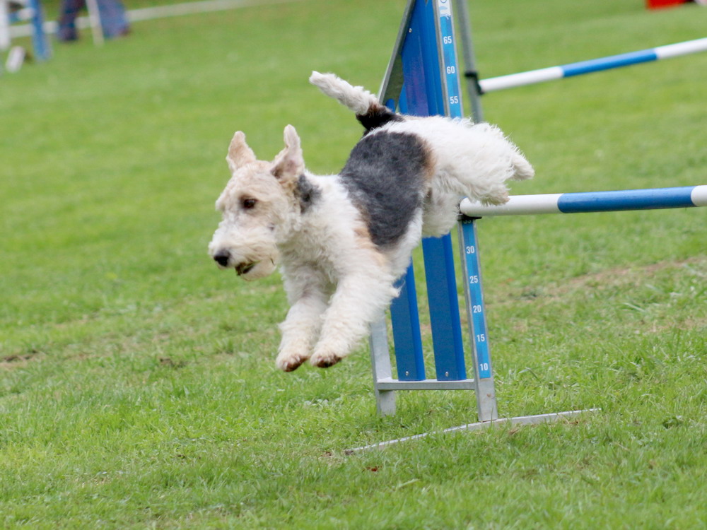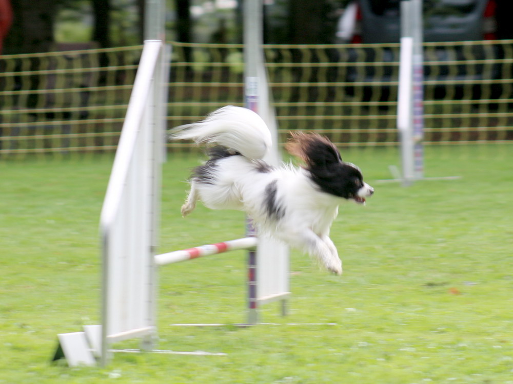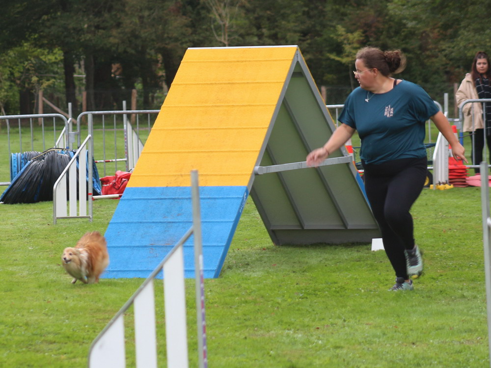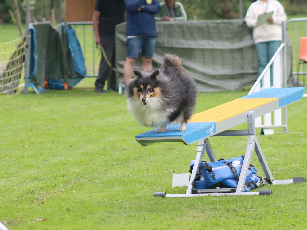 Pour permettre l'échauffement des chiens avant de concourir ... et des maîtres!, quelques obstacles d'agility ont été mis à disposition dans la prairie derrière les terrains du concours.
