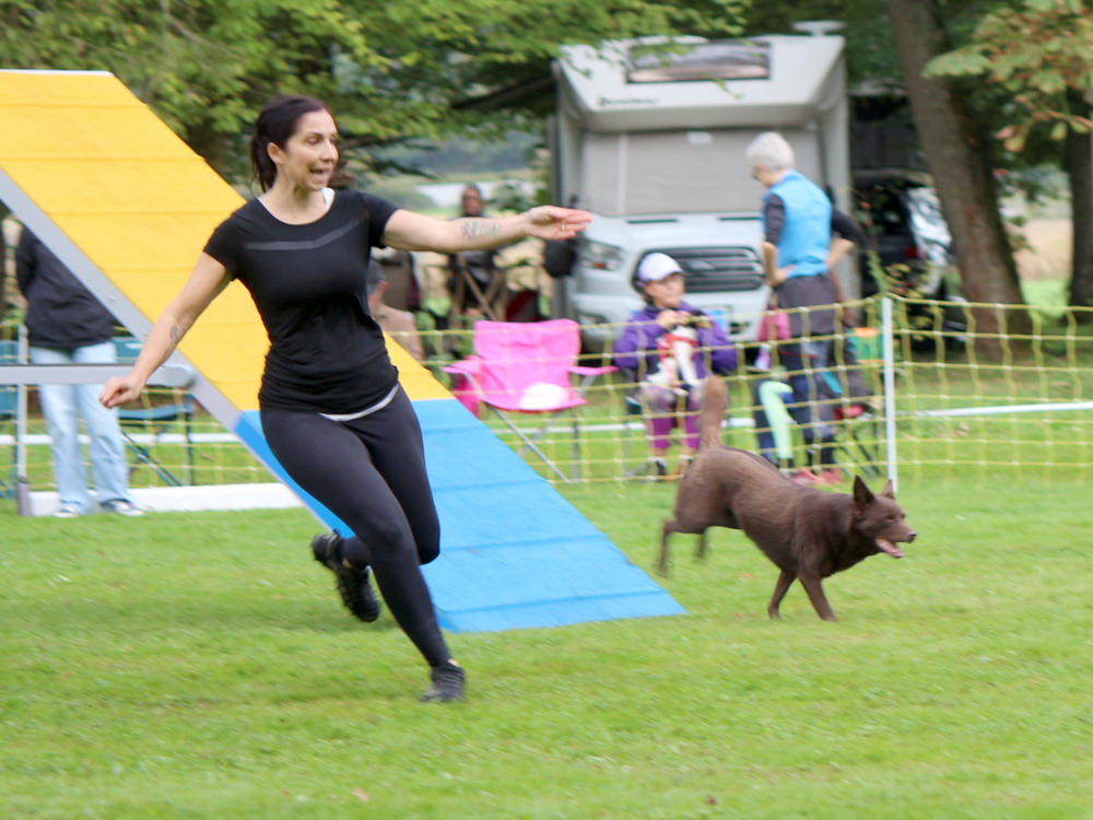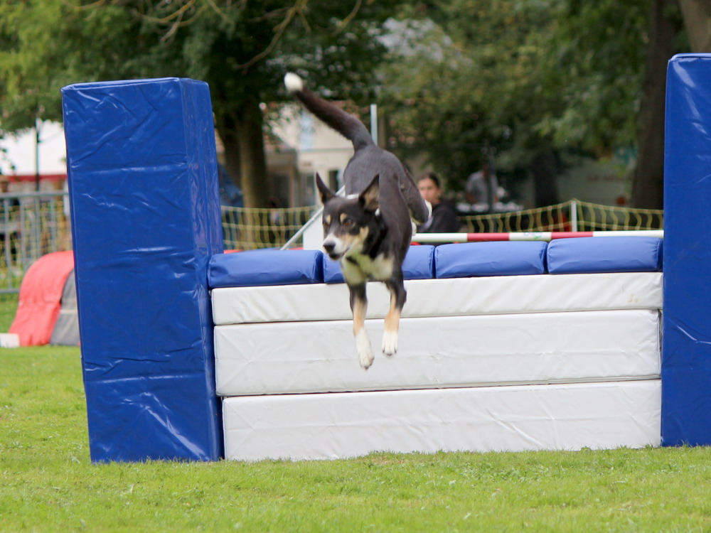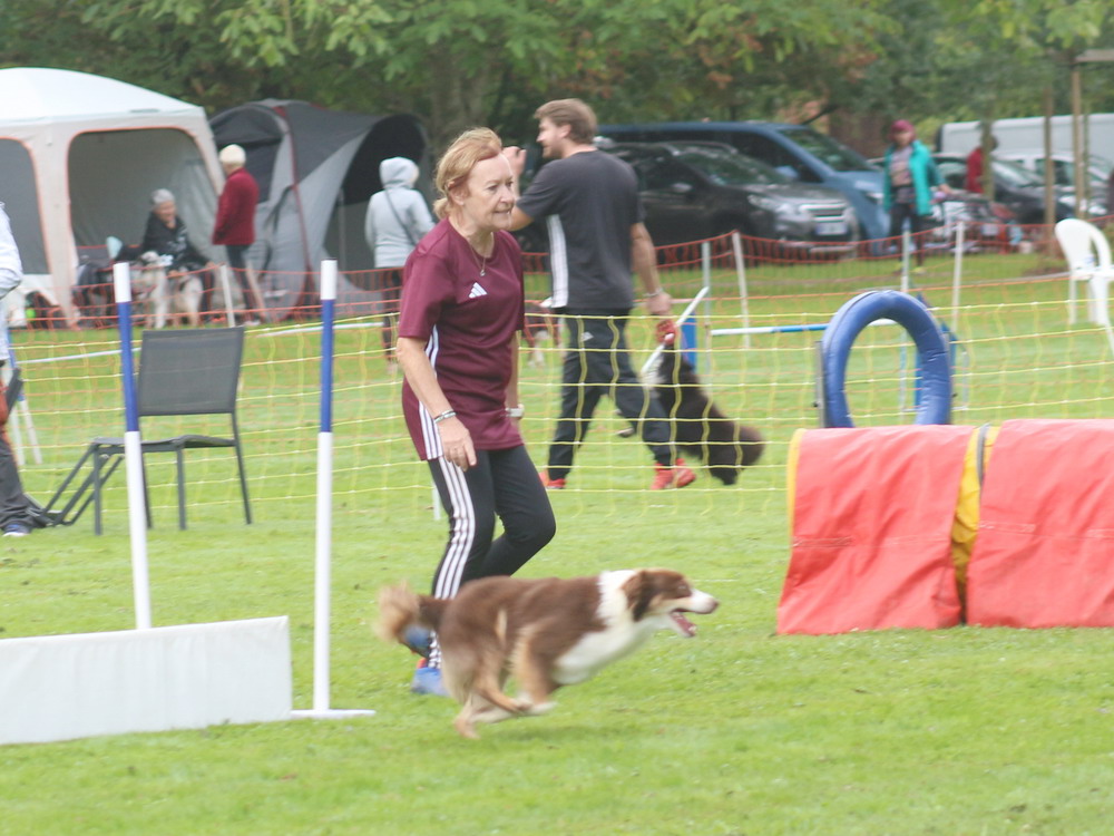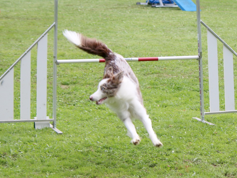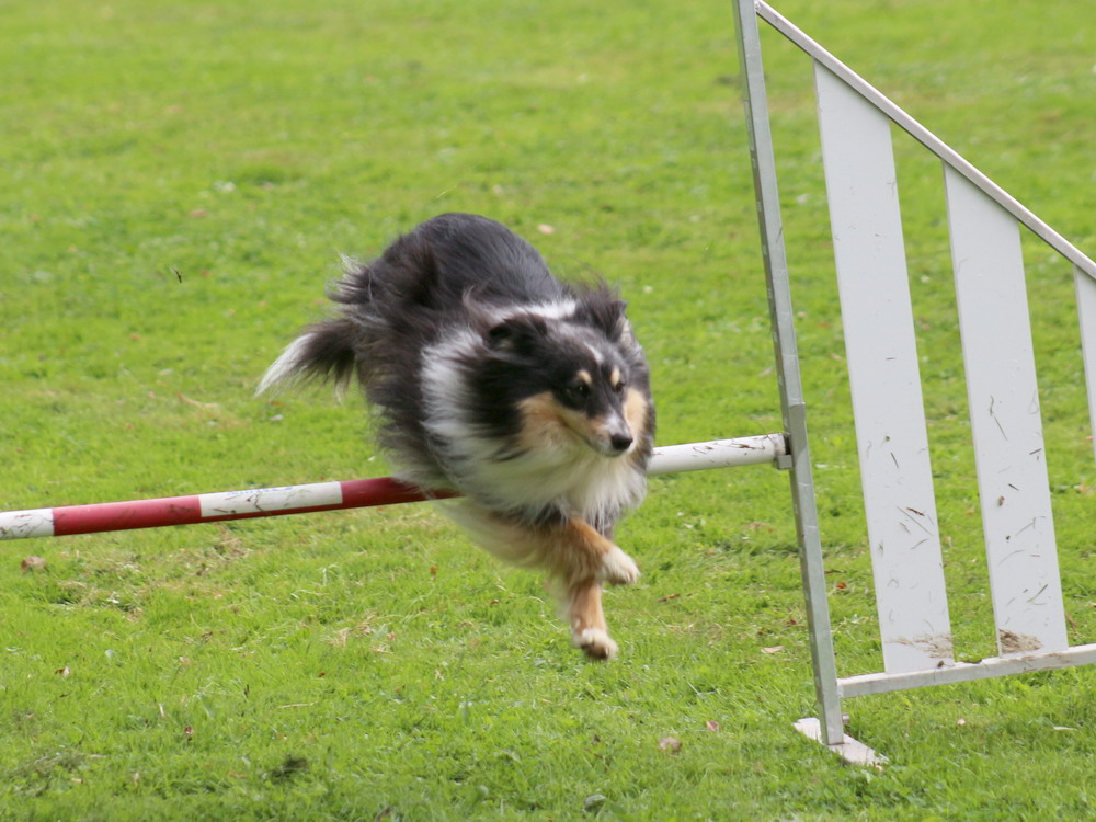 Pour permettre l'échauffement des chiens avant de concourir ... et des maîtres!, quelques obstacles d'agility ont été mis à disposition dans la prairie derrière les terrains du concours.