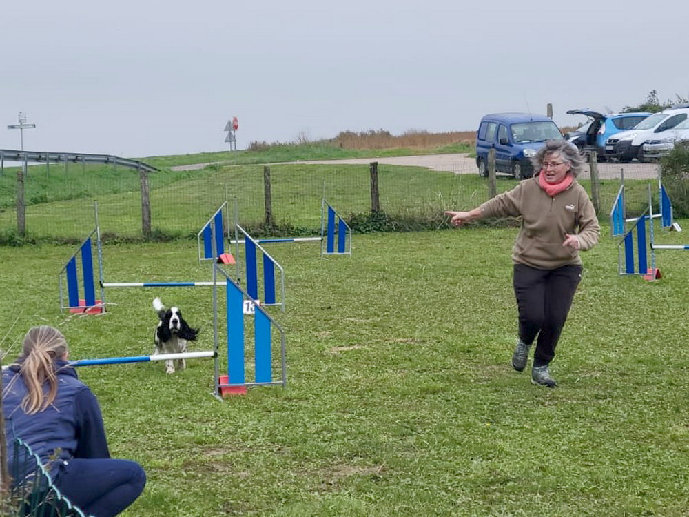 Mathilde va aussi rappeler les méthodes d'apprentissage qui permettent d'arriver plus rapidement à un résultat optimum et tester quelques pistes pour rectifier les défauts observés (utilisation et positionnement des régulateurs sur les descentes de zone, slalom couloir pour redonner confiance à son chien, ...)