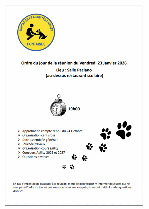 Le comité d’administration du club se réunira le vendredi 23 janvier, salle Paciano, pour aborder les points suivants :