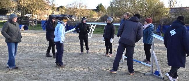 A 8h00 du matin, il fait très froid, bonnet gants et sous couche sous les doudounes. On en profite pour travailler les départs pour tous les chiens avant d'aborder les problèmes spécifiques a chacun, slalom, zones, maîtriser la vitesse de son chien ou gérer sa conduite. Pour une meilleure discrimination des obstacles à zones, ne pas hésiter à les nommer, le chien sera plus serein et se posera moins de questions sur sa trajectoire. Et pour une meilleur progression de l'apprentissage, la gestion de la récompense pour stimuler le chien.